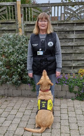 Else Grønkjær og Lab Showtime's Sylvester Stallone "Scooby" har været aktive i eftersøgningstjenesten. Selv om Scooby er pensioneret Eliteklassehund i DCH kan han stadig. De var kaldt ud til et tabt hørerapperat i forbindelse med hækklipning. Scoopy arbejder målrettet og sikkert, går lige igennem hækken og ud til de grene der er smidt over hækken. 4 min tog det en dygtig snude at finde høreapperatet og ejeren blev meget glad.